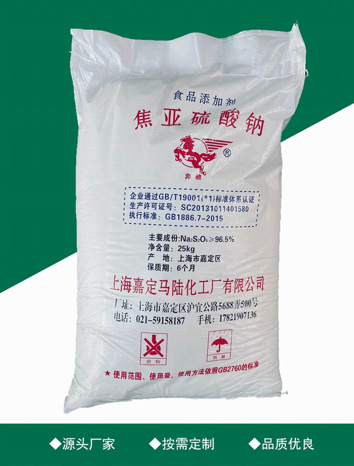上海嘉定馬陸化工廠有限公司主營生產,焦亞硫酸鈉、亞硫酸氫鈉等產品生產,幾十年的專注焦亞硫酸鈉研發(fā)生產,公司擁有完整、科學的質量管理體系,為確保公司產品能夠長期立足于市場,增強客戶的粘性,可滿足客戶的非標定制需求,可提供產品各個用途的解決方案,公司重信譽、守合同、保質量、快速發(fā)貨以,我們擁有專業的售前售中、售后團隊共同協作,確保用戶采購中的每個環(huán)節(jié)都能有滿意的體驗度。